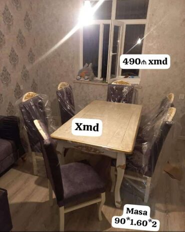 - Qablaşdırma: Stullar və masa qoruyucu plyonka ilə sarınmışdır.