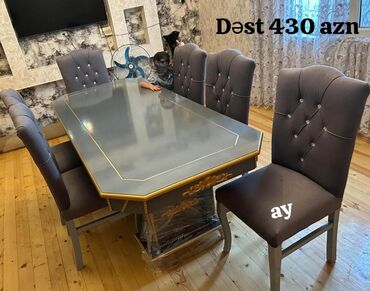 Qonaq otağı üçün, Yeni, Açılmayan, Dördbucaq masa, 6 stul