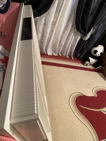 - Masa: düzbucaqlı, mərkəzi dayaq üzərində; üstü parlaq ağ səth; dekorativ relyef xətlər və qızılı element