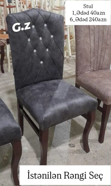 QatlanmayanYemək otağı üçün yumşaq oturacaqlı klassik stullar.