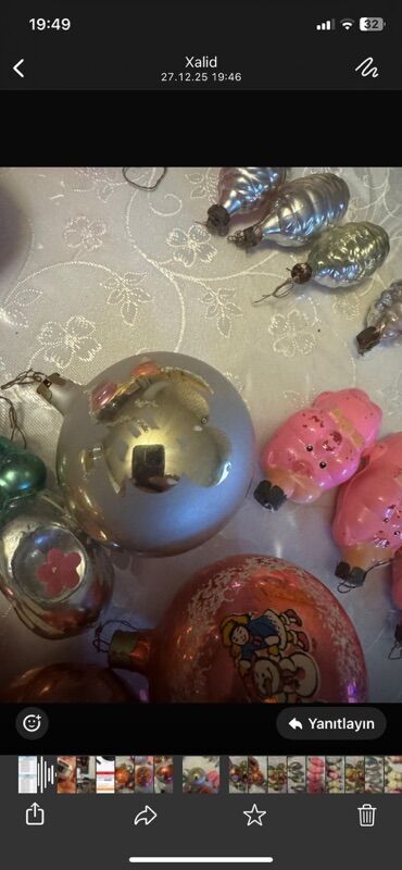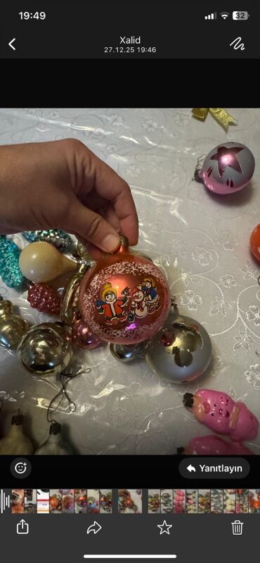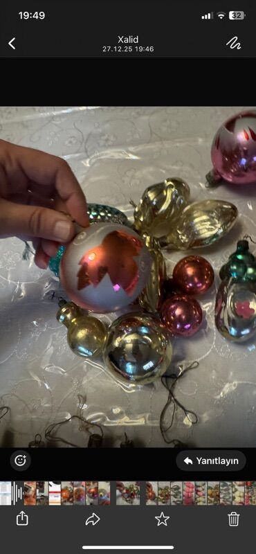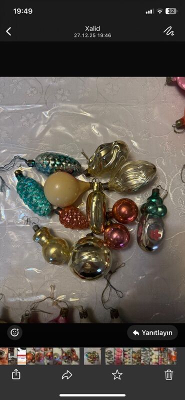 - Klassik şüşədən hazırlanmış müxtəlif formalı və rəngli ağac bəzəkləri.