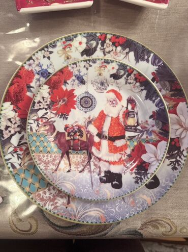 Məhsul: Dekorativ serviz boşqa dəsti - Sayı: 6 ədəd yemək boşqabı - Material: nazik porselen - Dizayn: mozaika naxışlı səth, qızılı haşiyə və mərkəzdə “H” monoqramı - Rənglər: boz-ağ mozaika tonla...