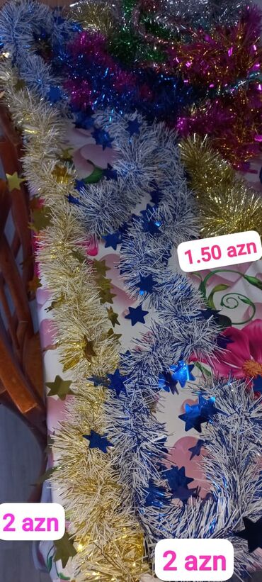 Yeni il ağacı bəzəkləri dəsti - Müxtəlif formalı və rəngli bəzəklər: klassik kürəciklər, uzunsov parıltılı oyuncaqlar, üst bəzəyi üçün qızılı tel ulduz. - Rənglər: qızılı, gümüşü, mavi, yaşıl, qır...