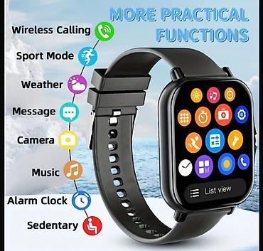 Ağıllı saat – kvadrat ekranlı, toxunma idarəsi və yan düymə/qol düyməsi ilə. Xüsusiyyətlər: - Rəngli tam ekran displey, müxtəlif saat siferblatları - İdman rejimləri: qaçış, gəzinti və s. (ikonala...