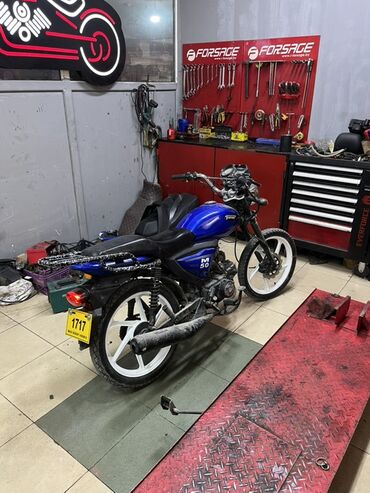 Moped/motorsiklet – klassik tərtibatlı, şəhər və kənd yolları üçün praktik model. Xüsusiyyətlər: - Rəng: -boz - Mühərrik: benzinli, karbüratorlu (sökülüb-takılması və servisi asan) - Ötürücü: mexa...