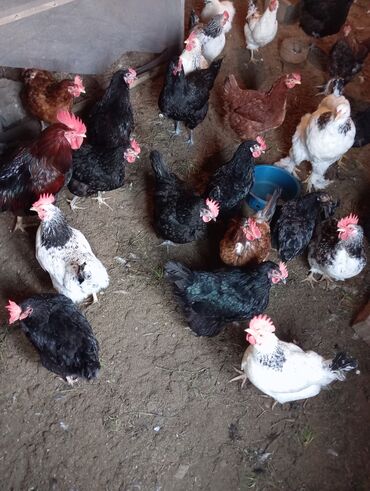 - Fərqli cinslərdən toplanmış sürü: ağ-qara ləkəli, qara, qırmızı-qəhvəyi və naxışlı toyuqlar və horozlar.