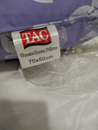 TAC brendinin quş tükü yastıqları və bürüncəyi Yastıq -25azn Döşək-35azn - Yastıq ölçüsü: 70x50 sm (etiketdə göstərilib) - Doldurma: Goose Down (quş tükü) – yumuşaqlıq və dəstək balansı - Kənar tik...