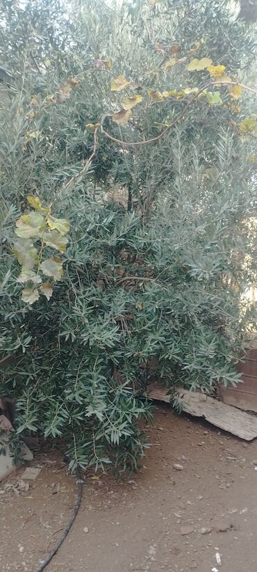 - Növ: Masa/yağlıq zeytun. Yarpaqlar gümüşü-yaşıl, budaqlarda qara yetişmiş meyvələr görünür.
