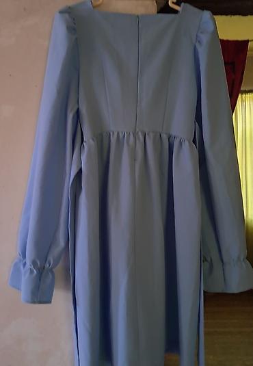Yay mavi rəngdə midi don - Model: kvadrat yaxalıqlı, beldən büzgülü A-kəsim. - Rəng: tünd-yaşıl tonlarına çalan toz mavi. - Qol: dirsəyə qədər, şişkin büzgülü və ətəkləri rezinli. - Arxa hissə: gi...