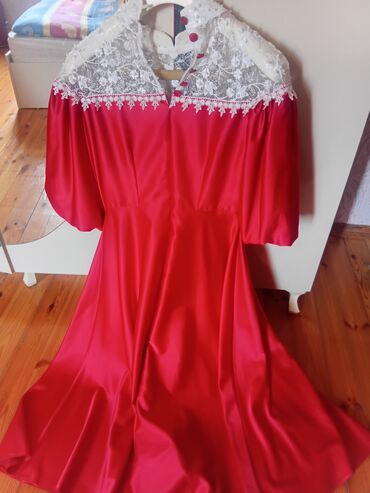 Qırmızı gecə geyimi – zərif, uzun, yan dəliyi olan model -250 azn alinib -70 azn satilir -2defe geyinilib
