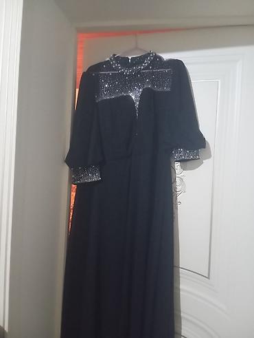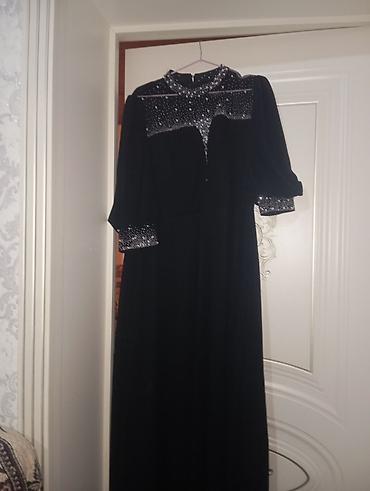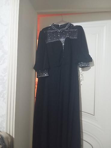 Şık gecə dəsti – qara rəngdə uzun ziyafət paltarı və uyğun sheer (şəffaf) üst geyim/kaftan 250 m alinib 1 defe geyinilib