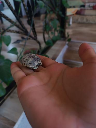 Kiçik quru tısbağa - Növ: Evdə saxlanılan quru tısbağa (herbivor). - Ölçü: Şəkildə qələm ilə yanaşı göstərilib – çox kiçik ölçülüdür, yeni başlayanlar üçün uyğun. - Qida: Yarpaqlı göyərti, ot qarı...