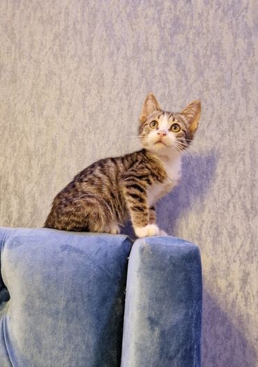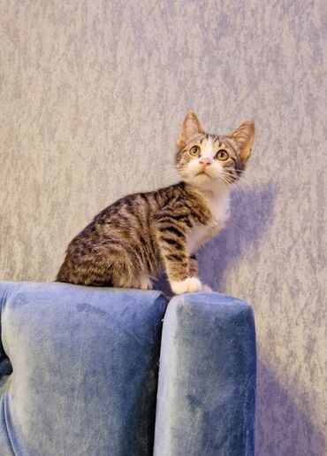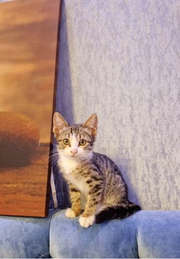 - Şirin, böyük sarı-yaşıl gözlü, üçrəngə yaxın zolaqlı (tüklərində boz, qəhvəyi və ağ tonlar) pişik balası
