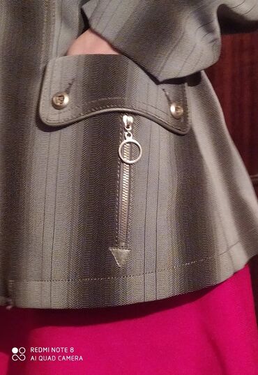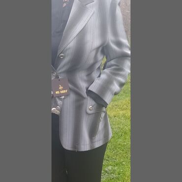 Zolaqlı dizaynlı, boz və göy çalarlı bu pencək zərif görünüş yaradır. Ön tərəfində metal düymələri və cibləri zəncirbəndlə bəzədilib. Əlavə düymələr də komplektdədir. Ofis və ya xüsusi günlər üçün uyğundur.
