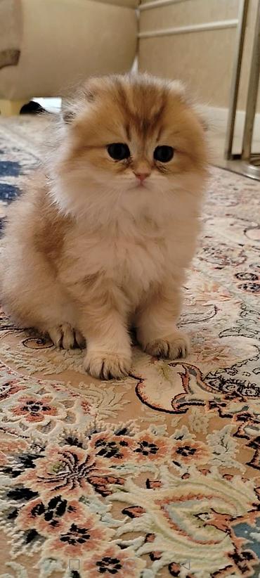Şotland qıvrımqulaq (Scottish Fold) pişiyi - Növ: Qıvrıq, irəliyə doğru yatmış qulaqlar, iri dəyirmi gözlər - Rəng: Qızılı-şabalıd (golden shaded) tonlarda, açıq krem qarın və sinə - Xəz: Qısa və ...