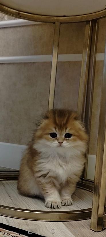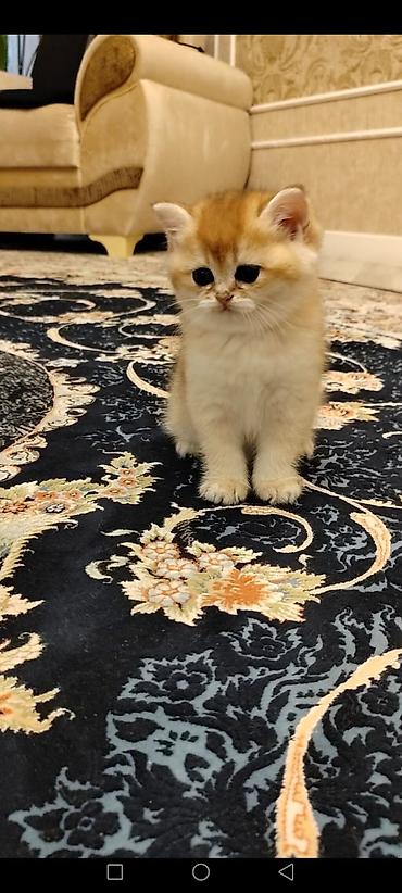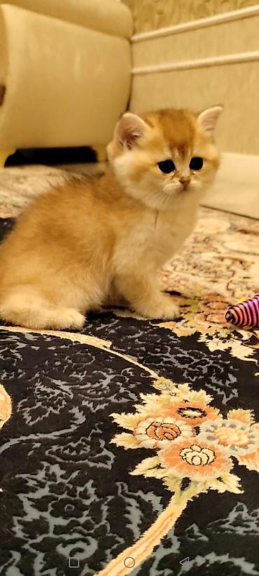 Britan (British Shorthair tipajına oxşar) balaca pişik balası - Yaş: təxminən 1,5–2 ay - Rəng: qızılı-şinşilla/“golden” tonları, qarın və sinə hissəsi açıq, pəncələrdə tünd naxışlar - Gözlər: iri,...