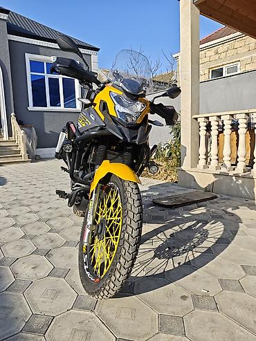 - Təkərlər: enduro/protektor naxışlı şinlər, sarı şpilkali disklər (spoke rims)