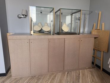- Alt modul: Geniş saxlama bölmələri olan bərk korpus (bir neçə qapılı şkaf). Üst səth vitrinlərin quraşdırılması üçün düz və möhkəmdir.
