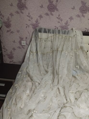 - Material: nazik tül (parıldayan effektli), üst hissədə enli lentli büzgü üçün hazır tikiş