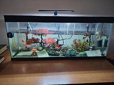 Akvaryum komplekti – geniş ölçülü 85 uzun hündür 35 en 30 akvarium, tam işlək avadanlıqlarla.su qzdiric 20baliq la birlikdə baxmaqa vaxd olmadıq üçün satırıq cəlilabada akvaryim