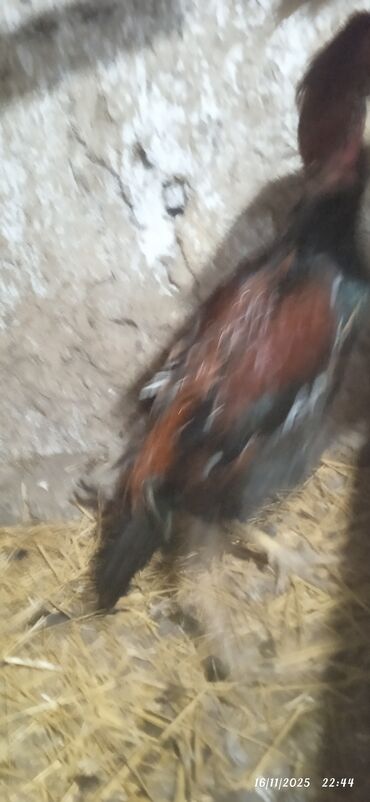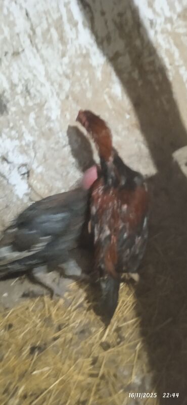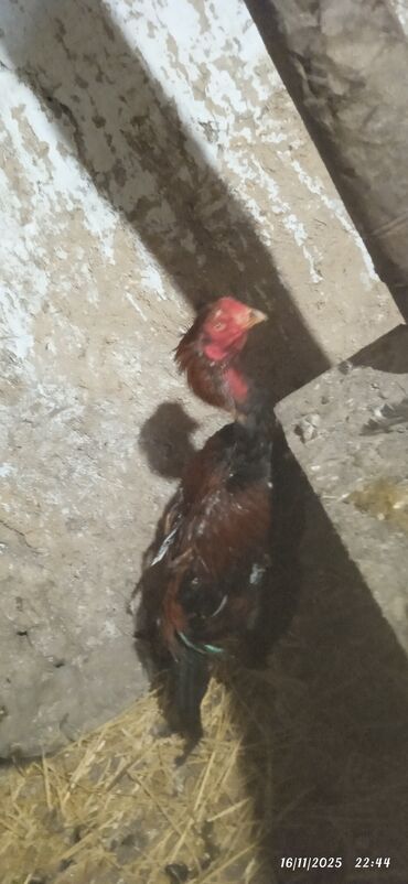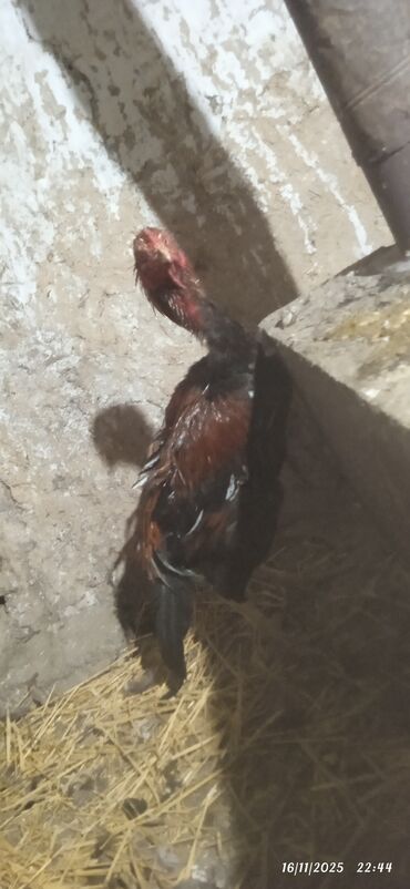 Aseel tipli döyüş xoruzu - Cins: Aseel (uzun boyunlu, güclü skeletli, sıx əzələli quruluş) - Rəng: Qara-qırmızı (parlaq qara lələklər, kürək və boyunda qırmızı çalarlar) - Gagasının və ayaqlarının...