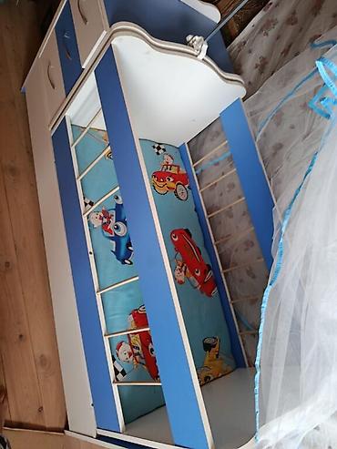 Uşaq otağı üçün funksional və səliqəli həll: həm beşik, həm də saxlama imkanı bir yerdə.