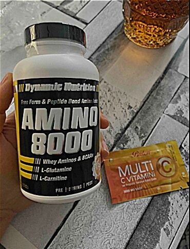 - Üzərində “AMINO 8000” və “Dynamic Nutrition” qeyd olunub