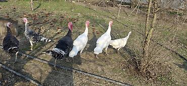 Məhsul: Damazlıq hinduşkalar Təsvir: - Cins yönümlü damazlıq sürü. - Şəkillərdə fərqli rəngdə (ağ-qara naxışlı) erkək və dişi hinduşkalar görünür. - Yaş: 6 aylıq (şəkildə qeyd olunub). - Güclü bəd...