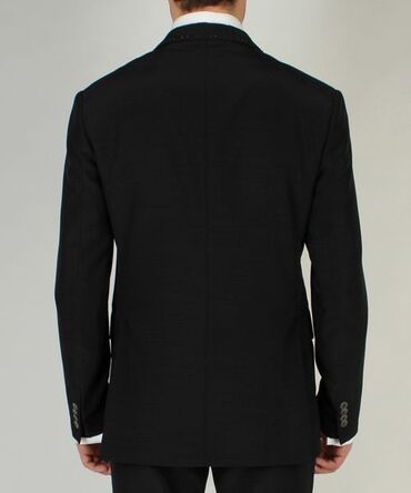 - Düz kəsimli, qara rəngdə klassik pencək və uyğun şalvar
