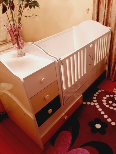 HazırAz istifade edilib yeni kimidir heç bir problemi yoxdur.Ağ və bej rənglərdə, çarpayı yanında əlavə komodu olan körpə çarpayısı. Çarpayının altında əlavə bir çekmece də mövcuddur. Uşaq otağı üçün praktik və funksional seçimdir.
