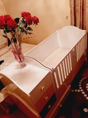 Kravat olan Beşik! 3 il işlədilib, heç bir qırığı yoxdur hətta matrasın klonkası belə üzərindədir. Siyirmələri mövcuddur. Ümumi ölçü uzunluq 1.70 dir, təkcə yataq hissənin uzunluğu 1.20-dir Hünd...