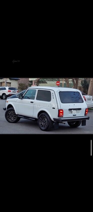 Ağ kuzov, qara detal və disklərlə səliqəli, funksional görünüş. Şəhər, kənd və ov/dağ marşrutları üçün uyğun, klassik Niva ruhunu daşıyan etibarlı 4x4.