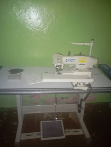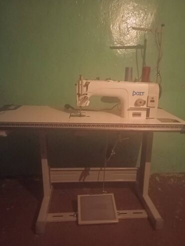 - Sənaye tipli düz tikiş maşını – DDL sinfi, 1 iynəli, alt dişli ötürmə, böyük iş masası və pedal sistemi ilə. İplik darağı və iplik stendləri üst hissədə quraşdırılıb, sürət tənzimləyicisi idarəetmə blokunda.