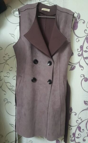 Təmiz, minimal dizaynlı, silueti incəldən kəmərli jilet. Ölçü 42-yə uyğun.