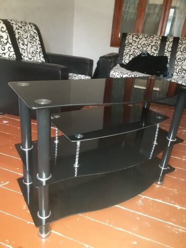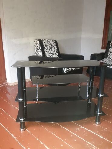 Müasir dizaynlı TV stendi - Rəng: ağ rəf səthləri, qara metal karkas - Material: möhkəm metal çərçivə, hamar laminat/taxta tipli ikiqat rəf - Ölçü təsviri: geniş üst səth böyük ölçülü televizorlar...