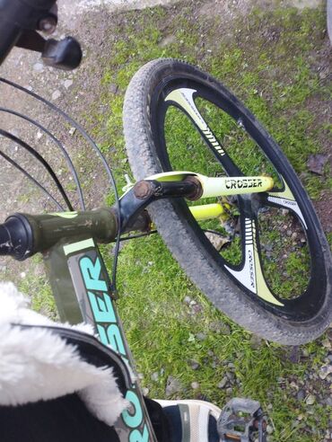 Uşaq velosipedi – sarı rəngli, 16 düymlük təkərlər - Çərçivə: polad, klassik V-frame - Təkərlər: 16", sarı disklər, şinlər şəhər/səhra tiplidir - Əlavələr: ön səbət, zəng, arxa yük daşıyıcı, arxa p...