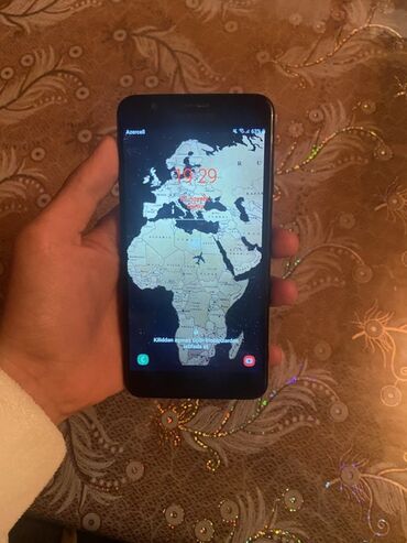 Gündəlik istifadə, zəng, mesajlaşma, sosial şəbəkələr və yüngül tətbiqlər üçün ideal klassik Samsung smartfonu. Ekranda dünya xəritəsi fon şəkli ilə göstərilib, saat və bildirişlər aydın görünür.
