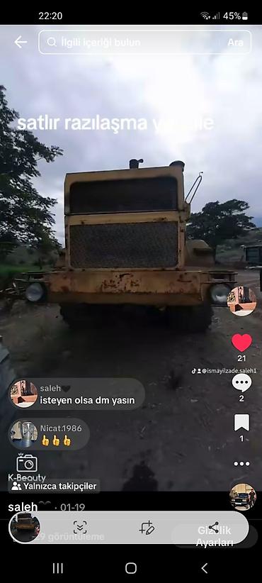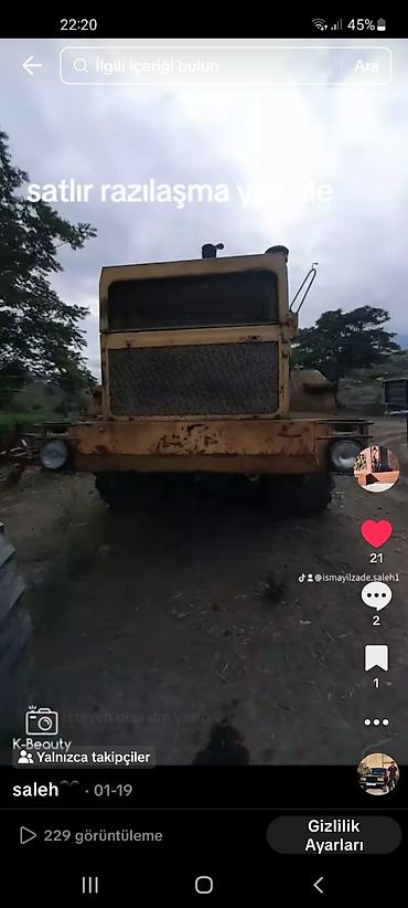 Ağır texnika – iri təkərli, sarı rəngli traktor/çəkmə maşını (ön hissəsi iri radiator toru ilə), arxasında torpaq işləmə qurğusu bərqərar.