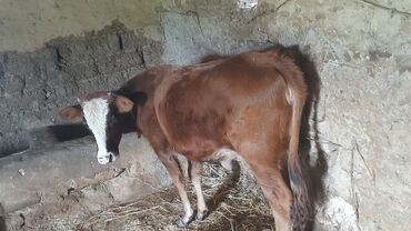 Qırmızı rəngli, buynuzlu dişi dana/sığır - Rəng: tünd qırmızı-kərpic