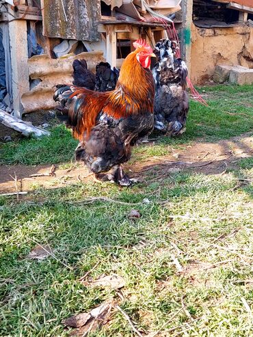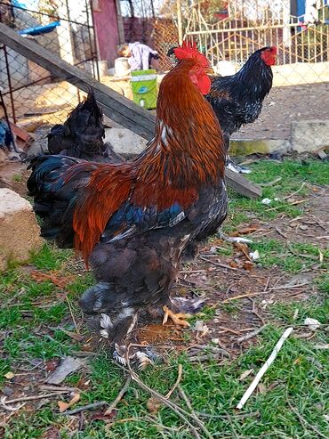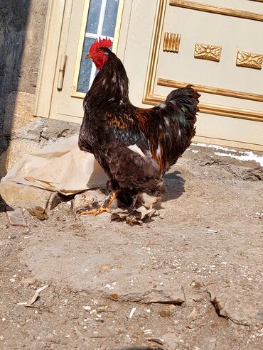 Heyratı ferəsi barterdə var cinsi qanı haqqında vatsapa yazun məlumat veriləcək - Növ: Ev quşu – toyuq (uzun boyunlu, iri cüssəli yerli döyüş tipli cinsə bənzər) - Rəng: Qara fon üzərində qırmızı-b...