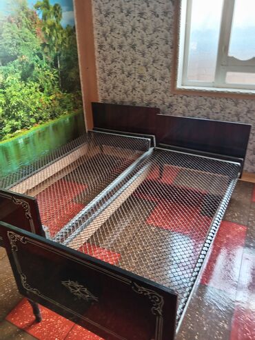 - İki nəfərlik dəmir torlu karkaslı çarpayı (başlıq və ayaqlıq bəzəkli, taxta yanlıqlar).