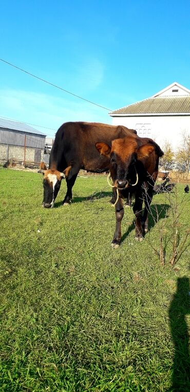 Süd və damazlıq üçün inək - Rəng: boz-qəhvəyi, qarın və ayaqlarda açıq ləkələr - Boyunbağı-zəncir ilə otlaqda saxlanılır - Sağlam bədən quruluşu, möhkəm dırnaqlar, enli kürək - Uzun quyruq, qısa b...
