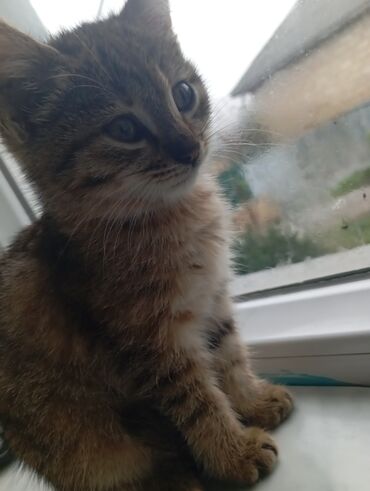 Sevimli balaca pişik balası - Rəng: qəhvəyi-boz tabby (xətdarlı) naxışlı tüklər, boğaz və ağız nahiyəsində açıq rəng - Gözlər: iri və ifadəli, parlaq - Qulaqlar: uclu, diqqətli görünüşlü - Xasiyyə...