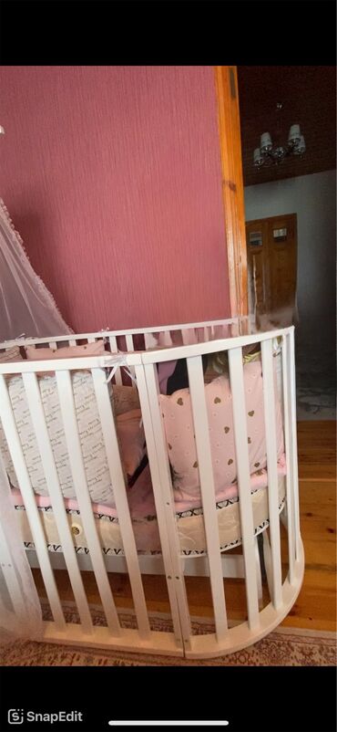 Yaxşı vəziyyətdədir yeni kimi uşaq heç yatmayıb içərisində matrası var əlavə döşək yorğan üzərində verilir .üzərinin tülüdə var