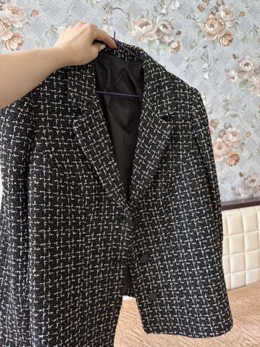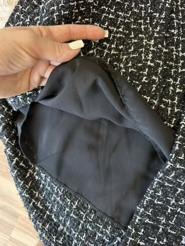 Qara və ağ rəngli tvid parçadan hazırlanmış bu pencək klassik və zərif görünüşə malikdir. Düz kəsimli, düymələrlə bağlanır və qara rəngli astarlı materialı var həmcinin duz ətəyi var.Həm işgüzar, həm də gündəlik tədbirlər üçün uyğundur.