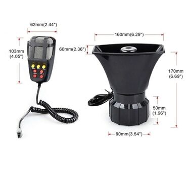 - Siren hoparlörü: 170 mm hündürlük, ağız hissəsi 160 mm, baza diametri 90 mm, alt hissə 50 mm