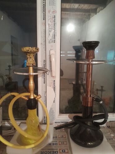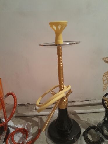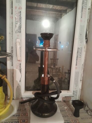 Nargilə dəsti - Şüşə kolba: iri həcimli, opal/iridescent effektli şüşə kolba, stabil geniş dib. - Gövdə: metaldan hazırlanmış, ortası spiral qoruyucu ilə bəzədilmiş gövdə; yan tərəfdə klapan. - Ba...