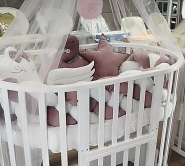 - Lyulka və beşik funksiyası: kiçik körpə üçün yuvarlaq lyulka, böyüdükcə uzadılan oval beşik formatı