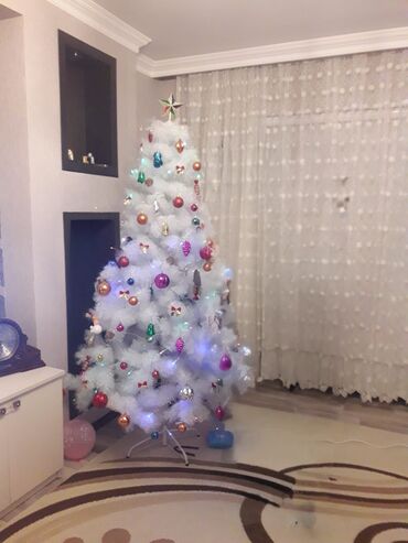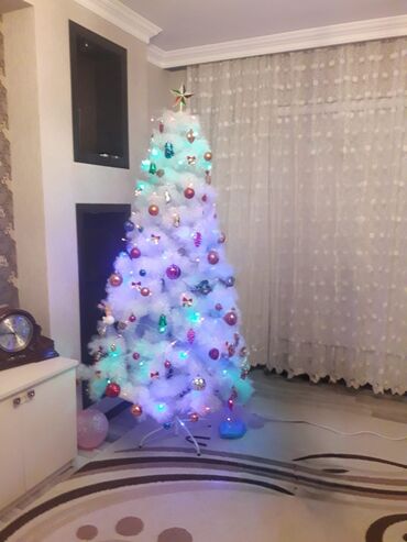 Ağ Yeni il şam ağacı – tam bəzədilmiş dəst