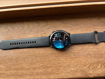 Ağıllı saat – dairəvi ekranlı, qara korpuslu model.